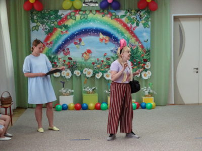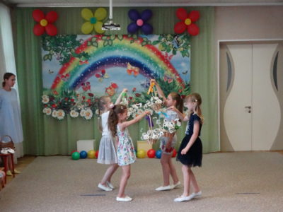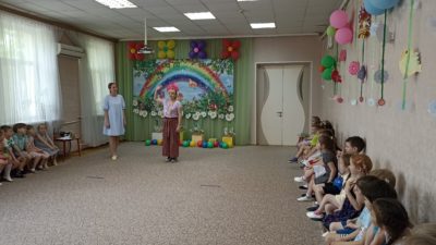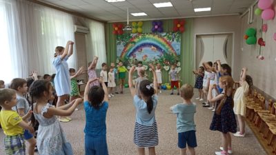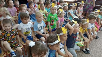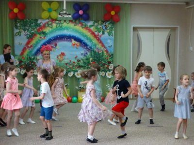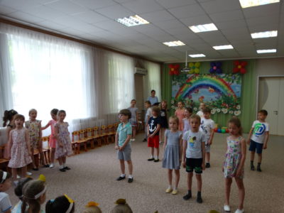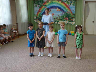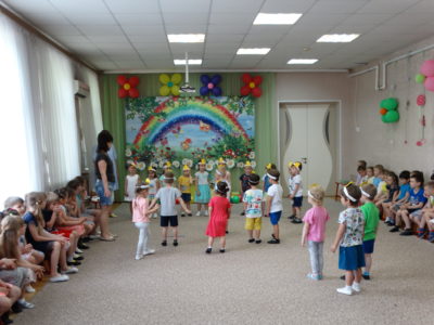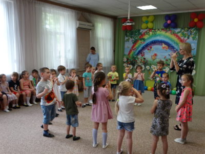 В нашем детском саду прошло праздничное мероприятие под названием «Здравствуй лето!». В праздничной программе приняли участие все возрастные группы детского сада. Танцы, песни, игры, шутки и смех звучали на празднике. Особую атмосферу создала Дюдюка Барбидокская, а волшебник подарил всем детям чупа-чупсы.
